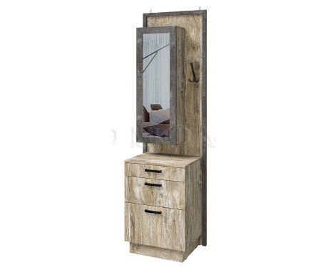Тумба с вешалкой Амели яркий представитель современного стиля Лофт, выполненный в сочетании грубого цвета бетона и ярко выраженного элемента Дуба Юкон.