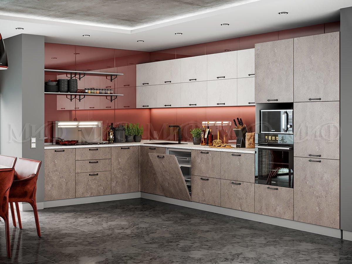 Кухня угловая Техно 2.4х4.0м - Бетон светлый/Бетон темный (МИФ)
