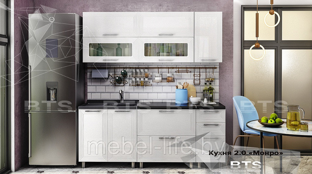 Верх комплекта состоит из шкаф настенный с горизонтальными дверями (ширина 800 мм), шкаф настенный с горизонтальными дверями (ширина 800 мм), навесного шкафа (ширина 400 мм),.