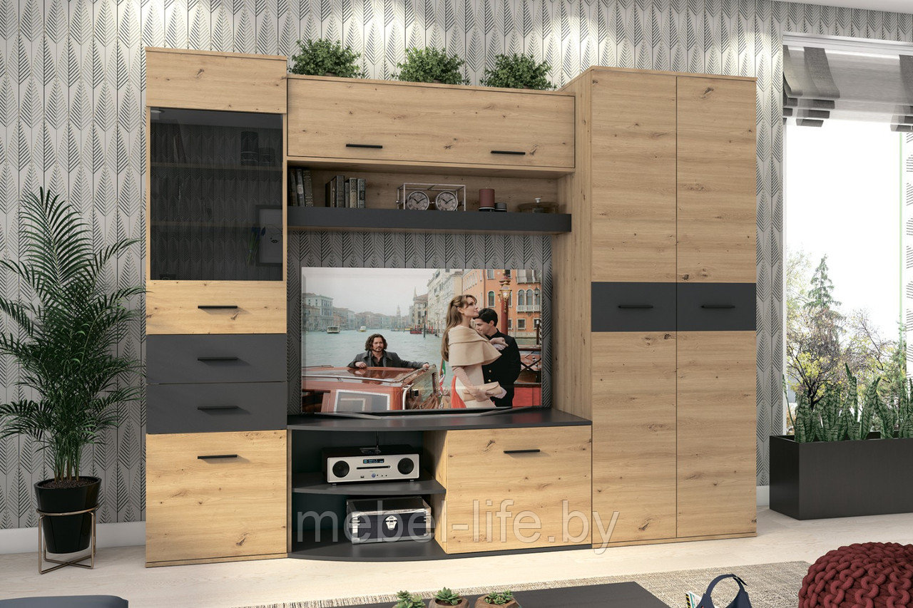 Гостиная Амалия имеет современный и стильный дизайн. Благодаря своим размерам позволит разместить все необходимое.